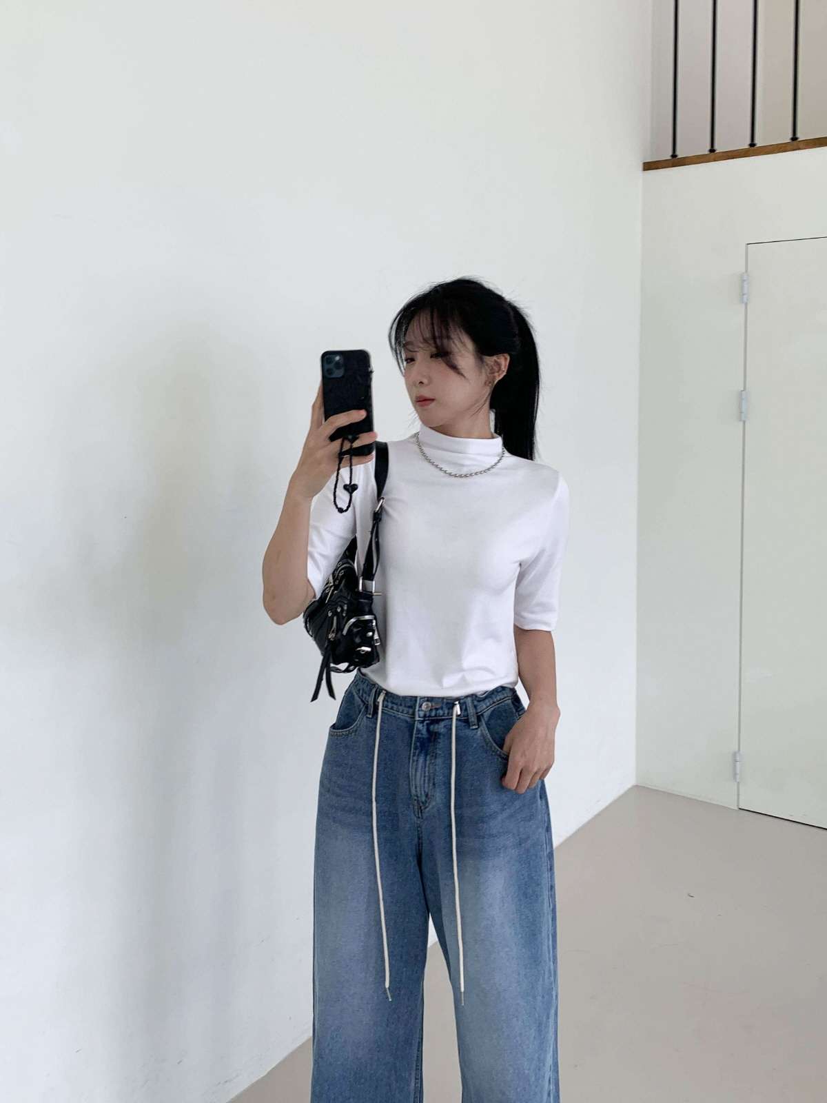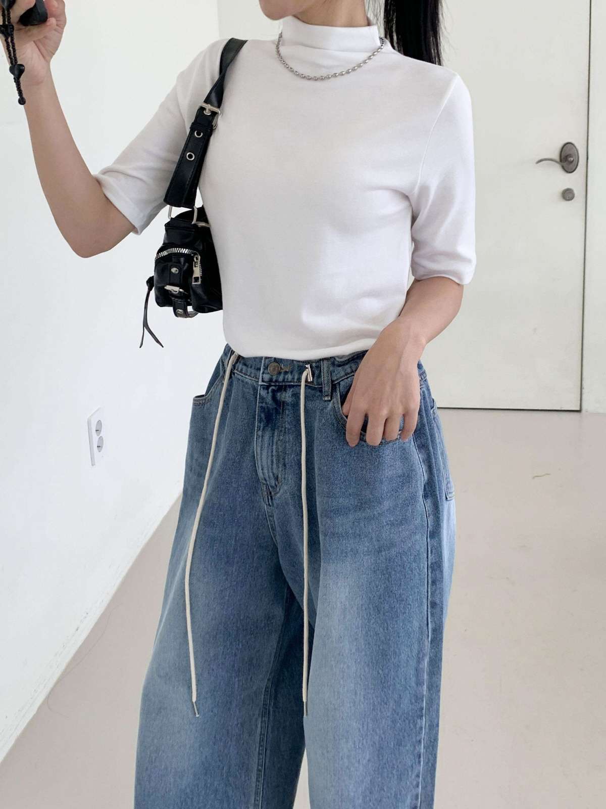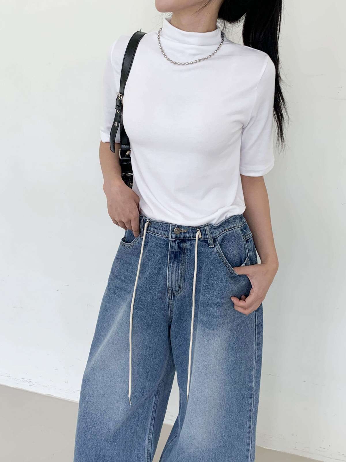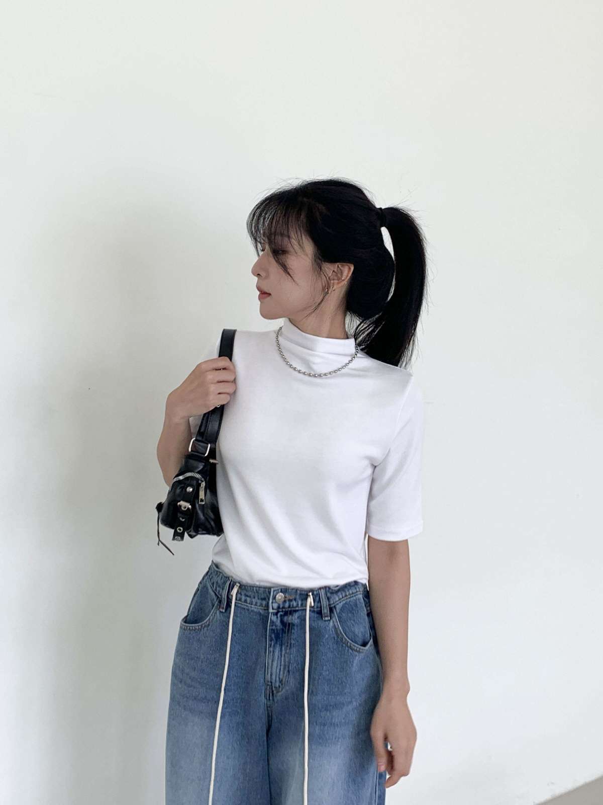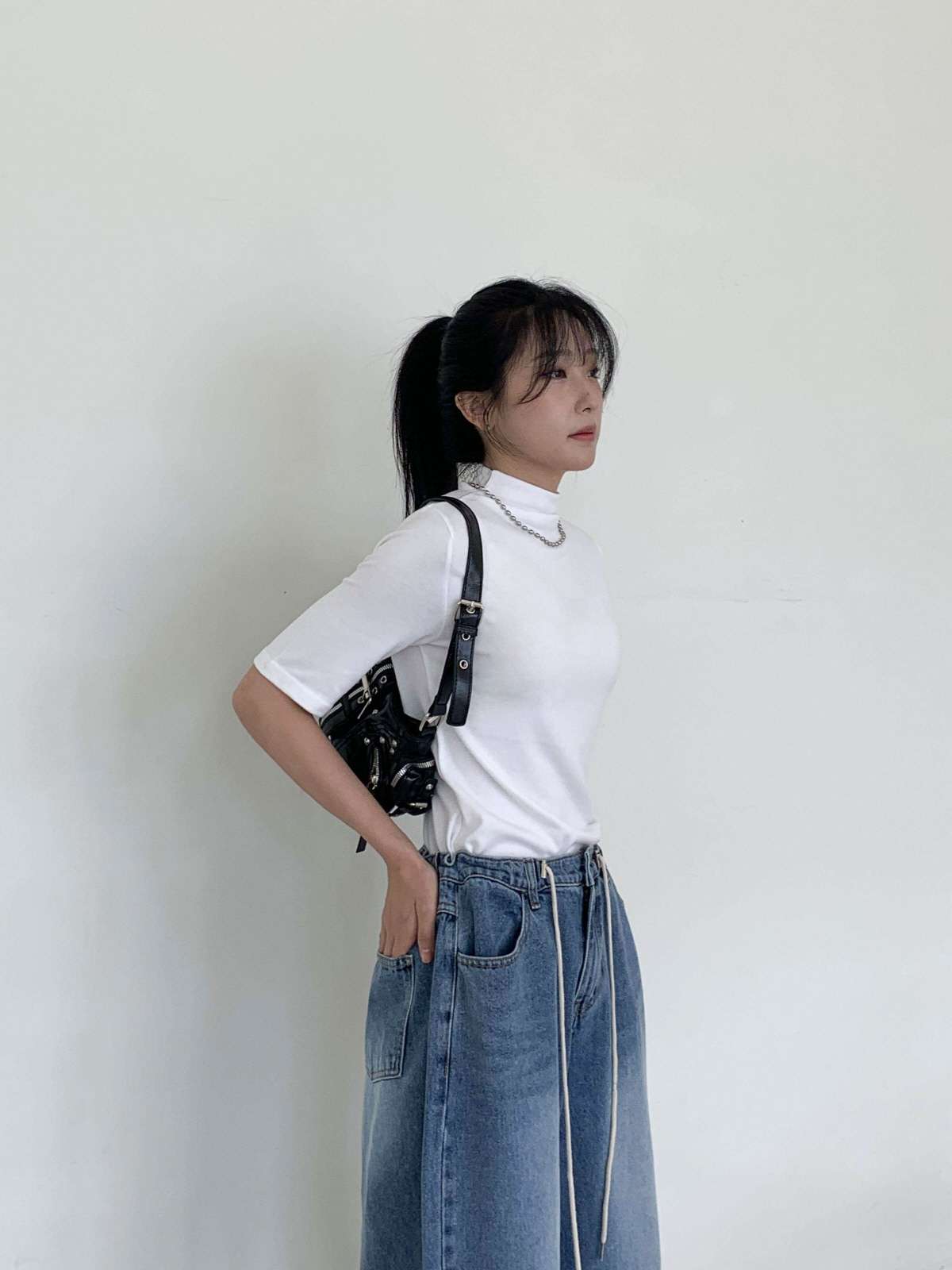 여유있는 핏으로 폴라의 답답함 없이 편안하게 입을 수 있는 반폴라 티셔츠