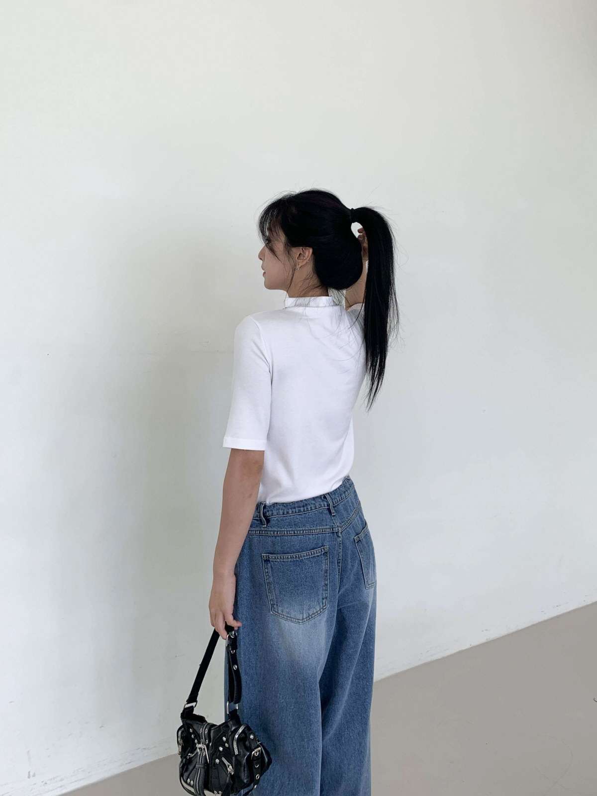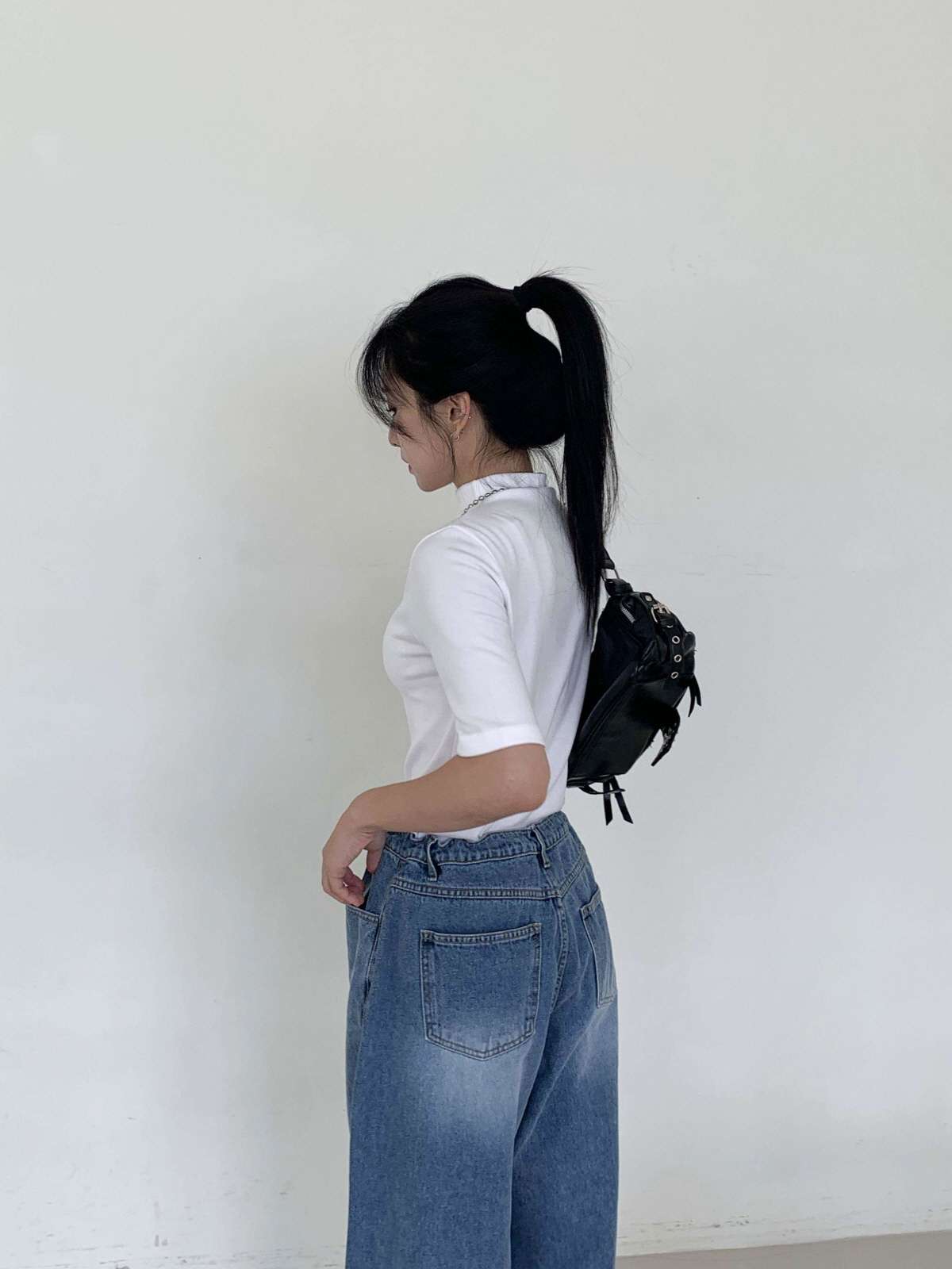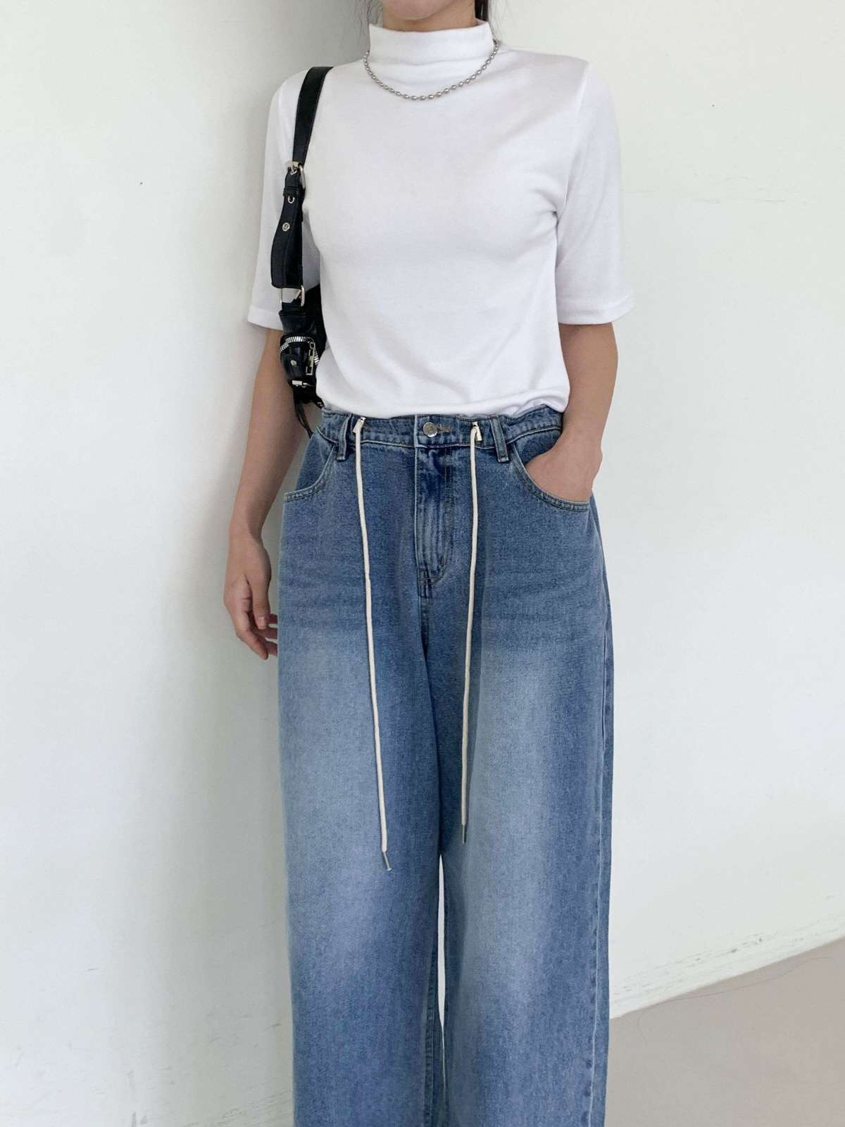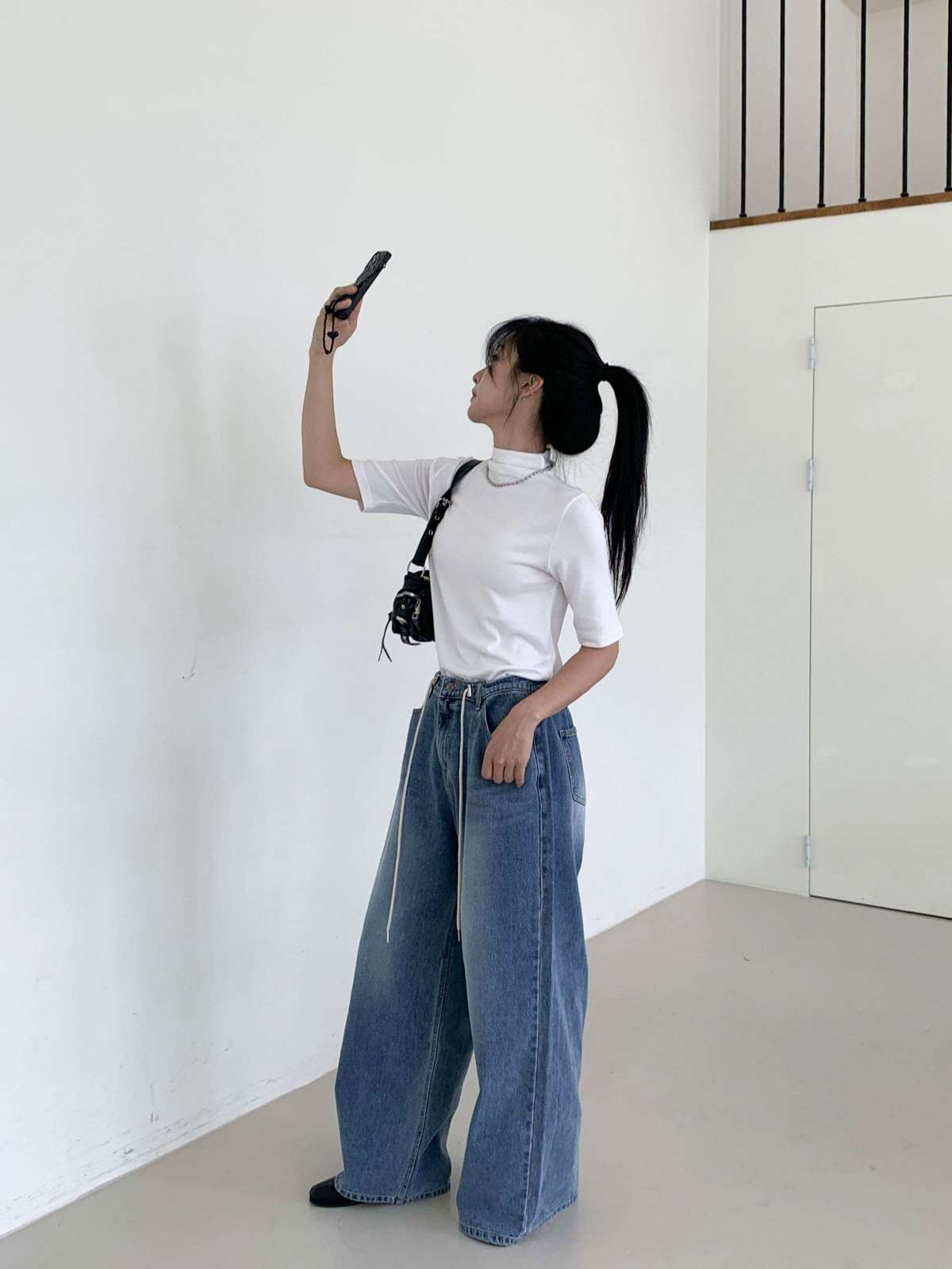 여유있는 핏으로 폴라의 답답함 없이 편안하게 입을 수 있는 반폴라 티셔츠
