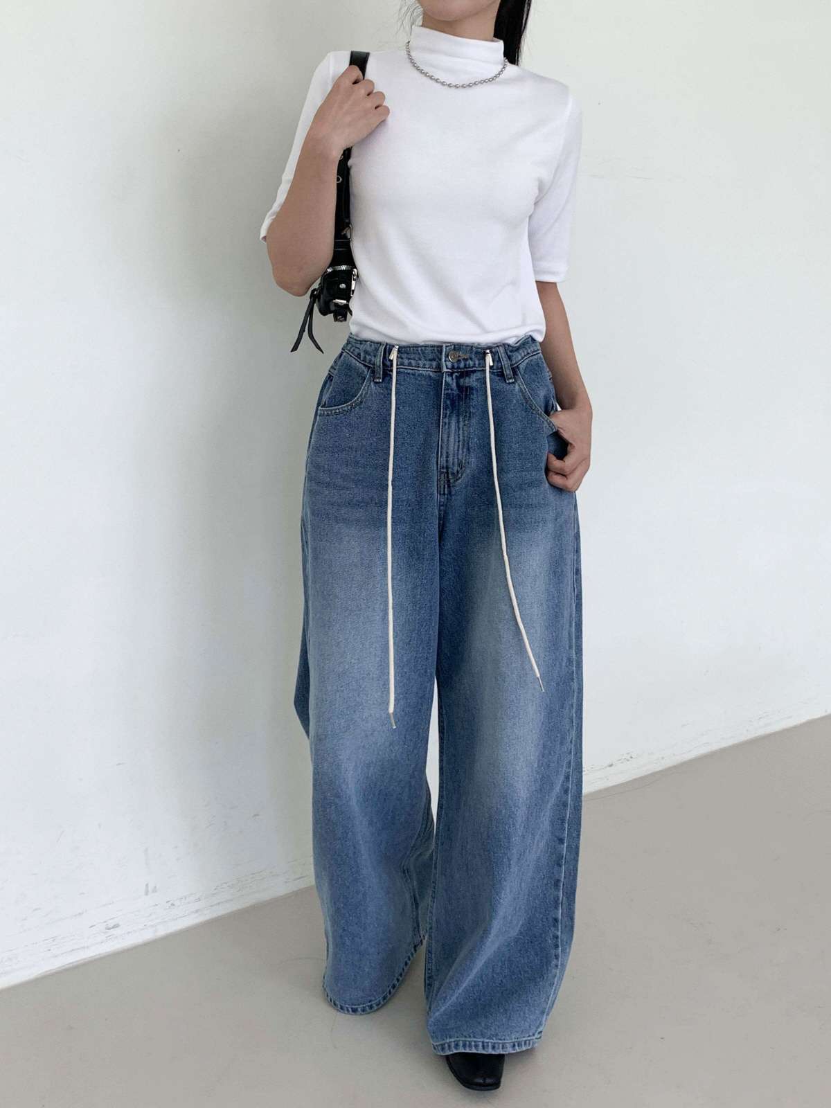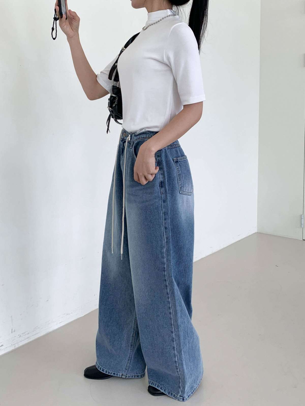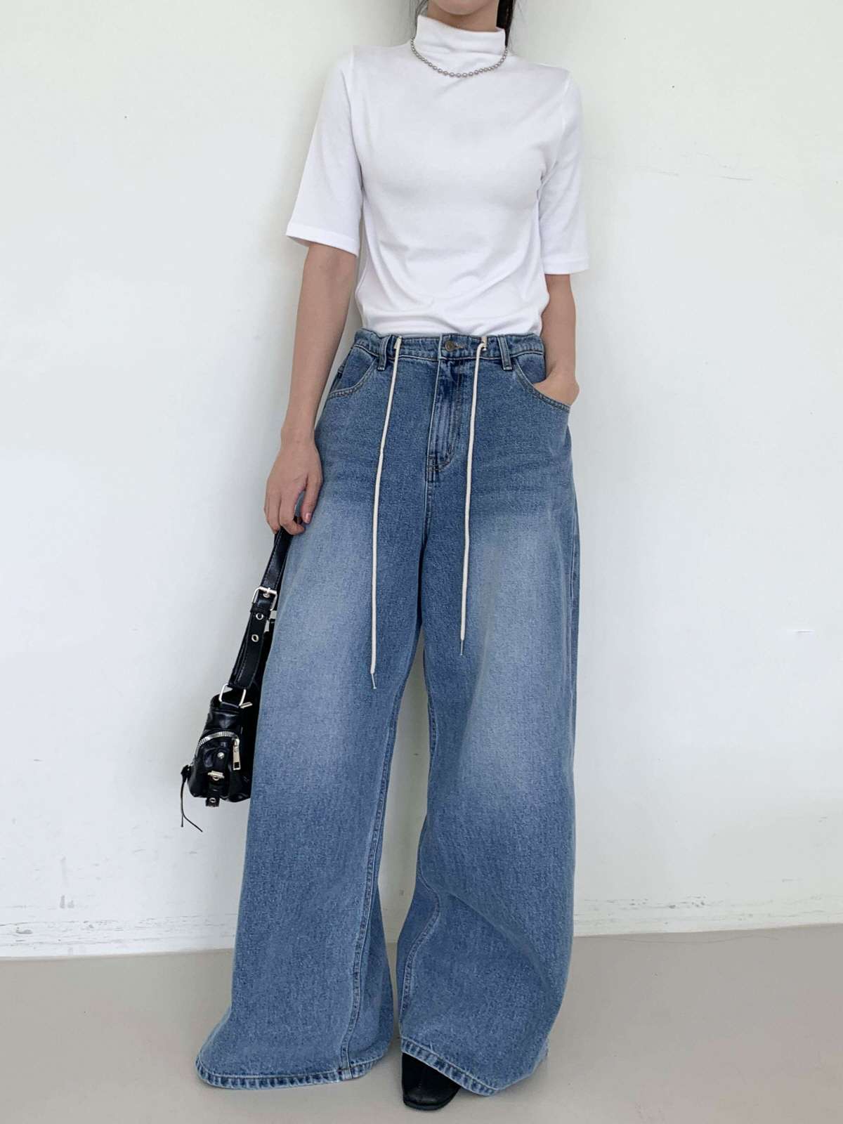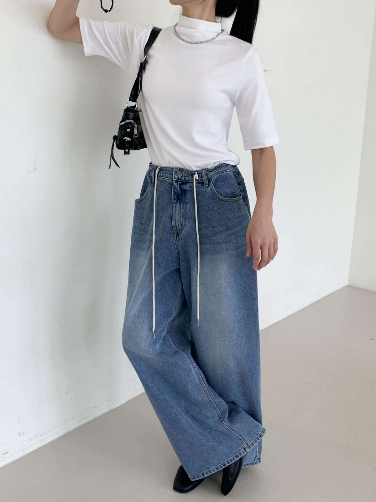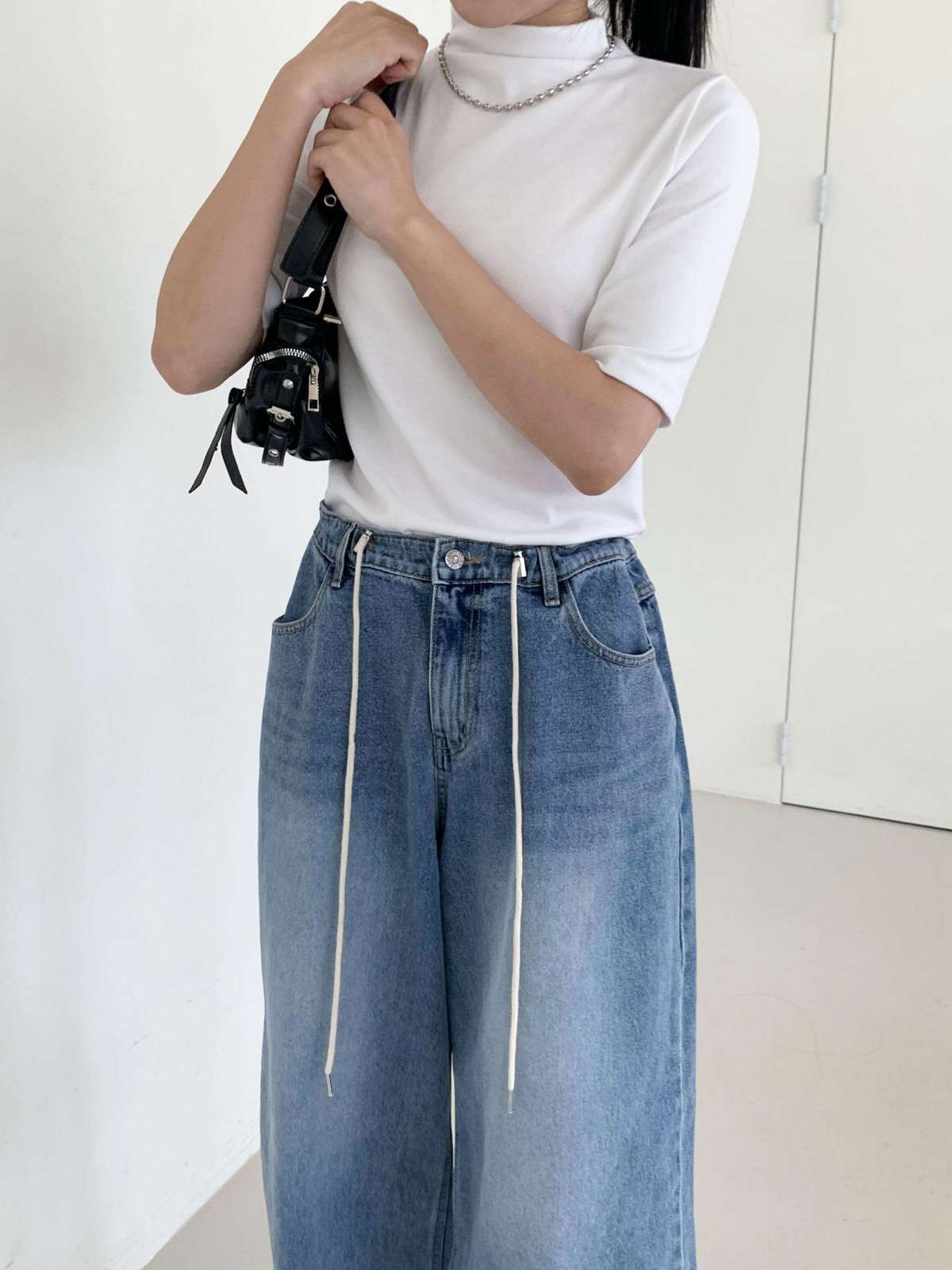 여유있는 핏으로 폴라의 답답함 없이 편안하게 입을 수 있는 반폴라 티셔츠