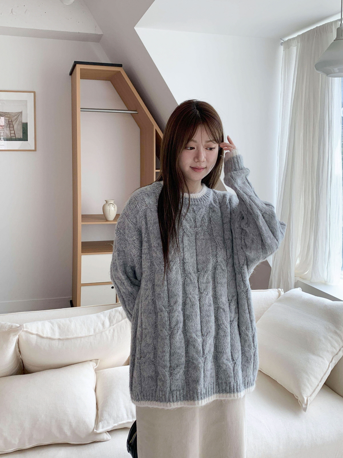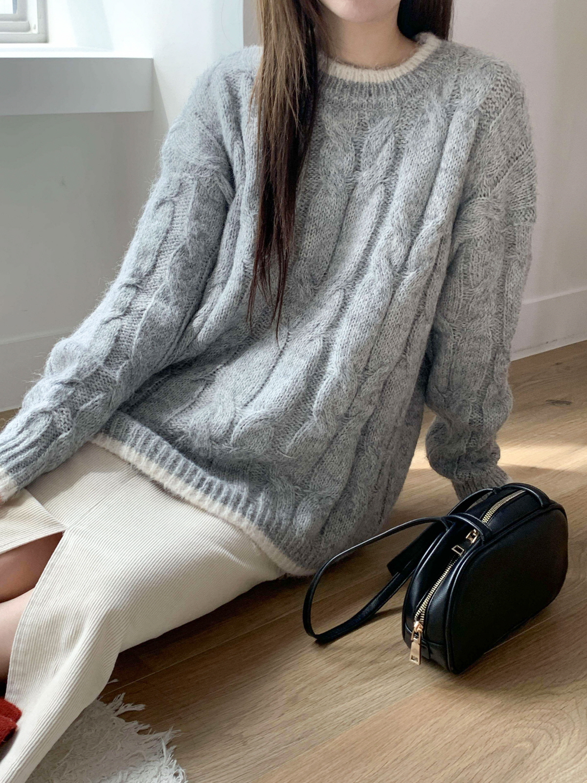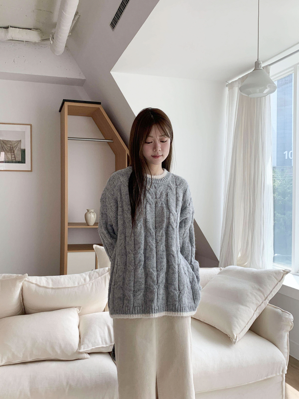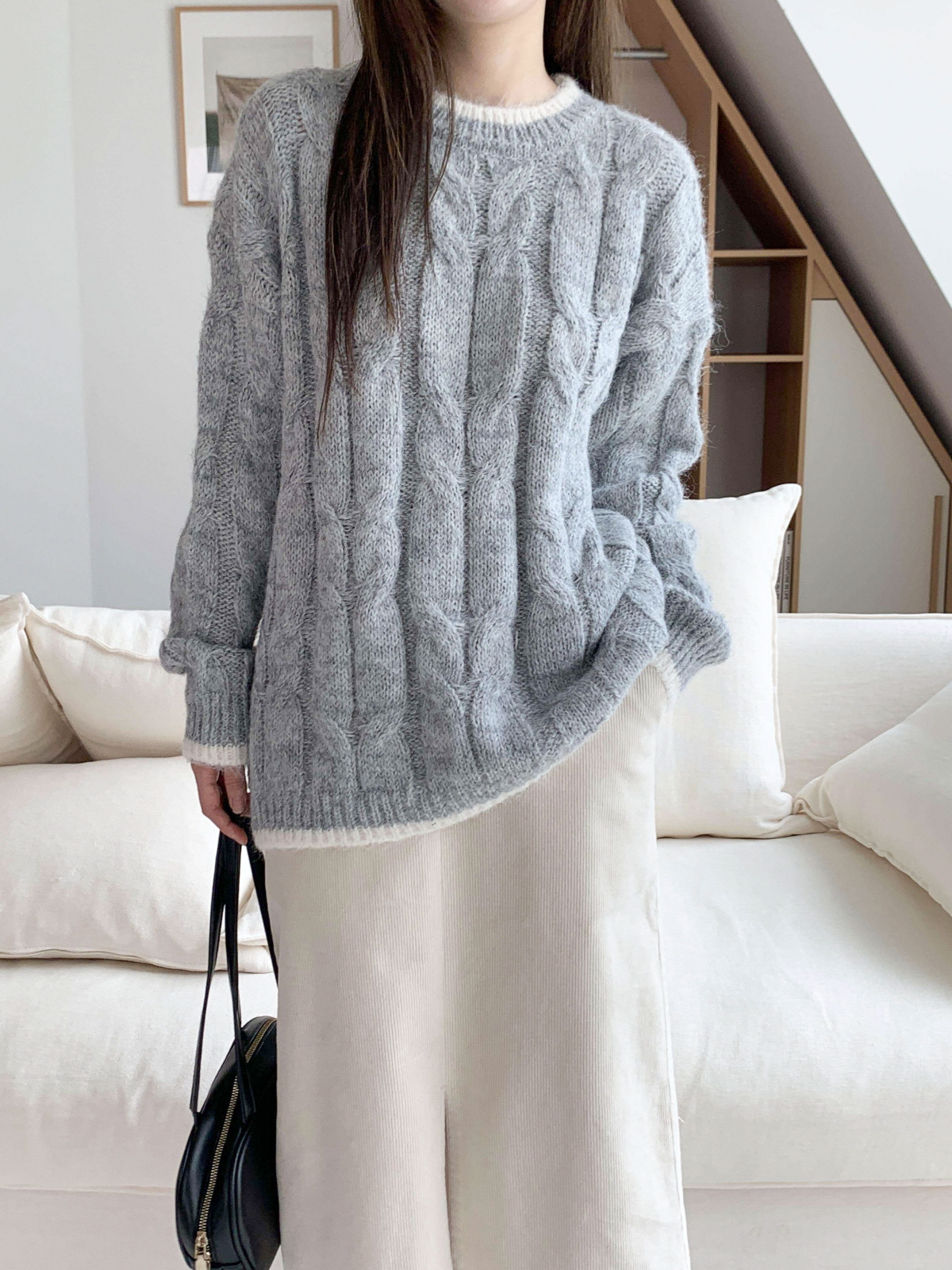 귀여운 꽈배기 짜임이 포인트인 데일리 니트