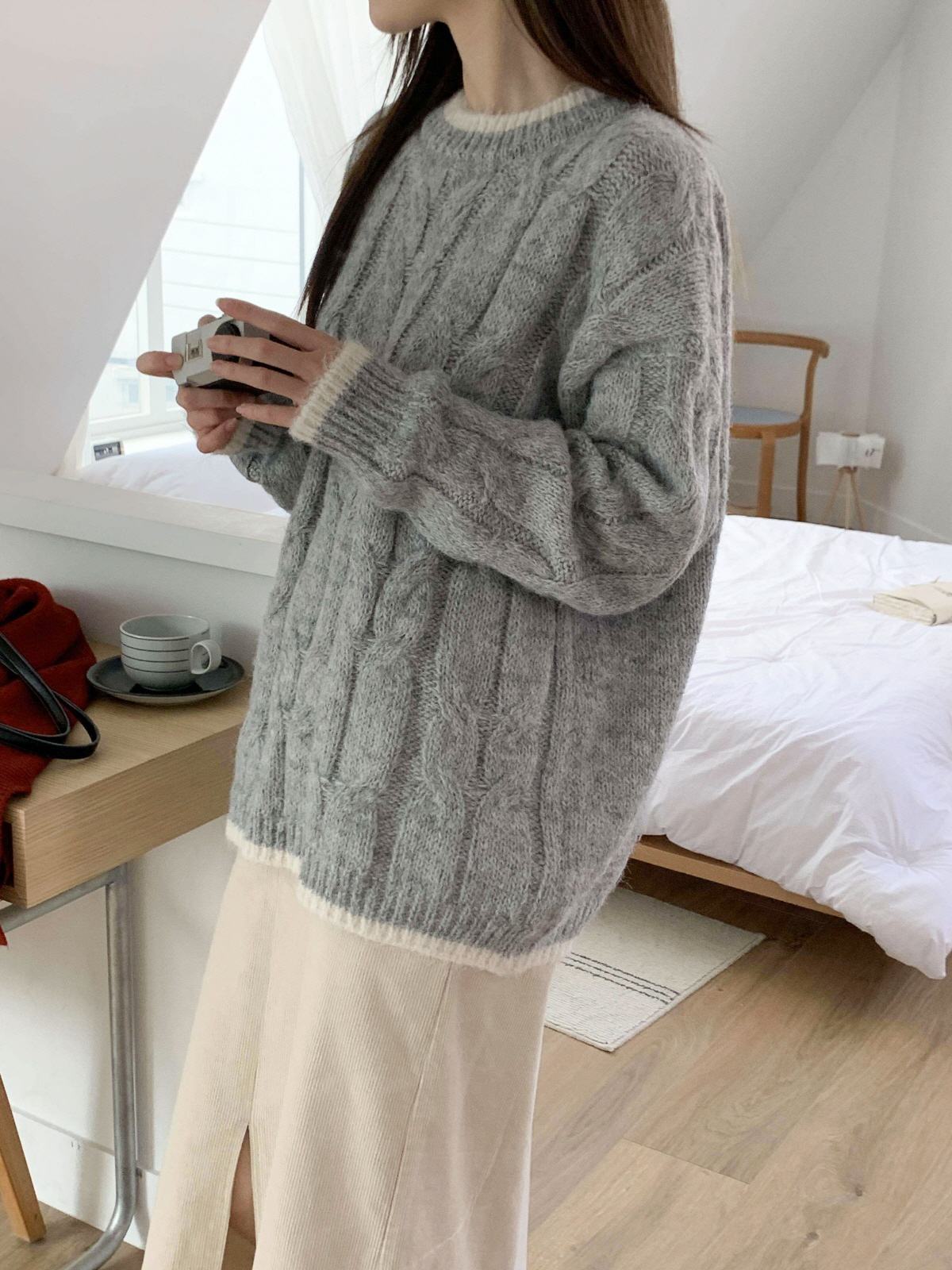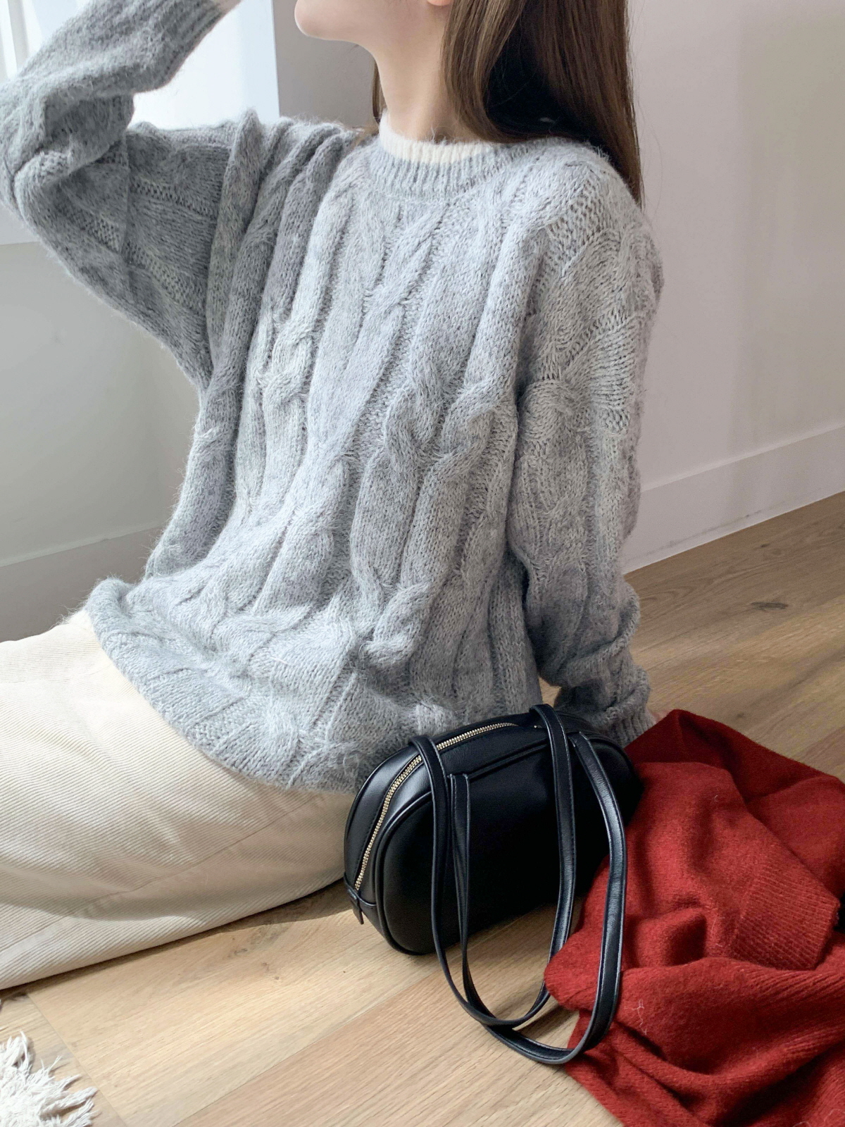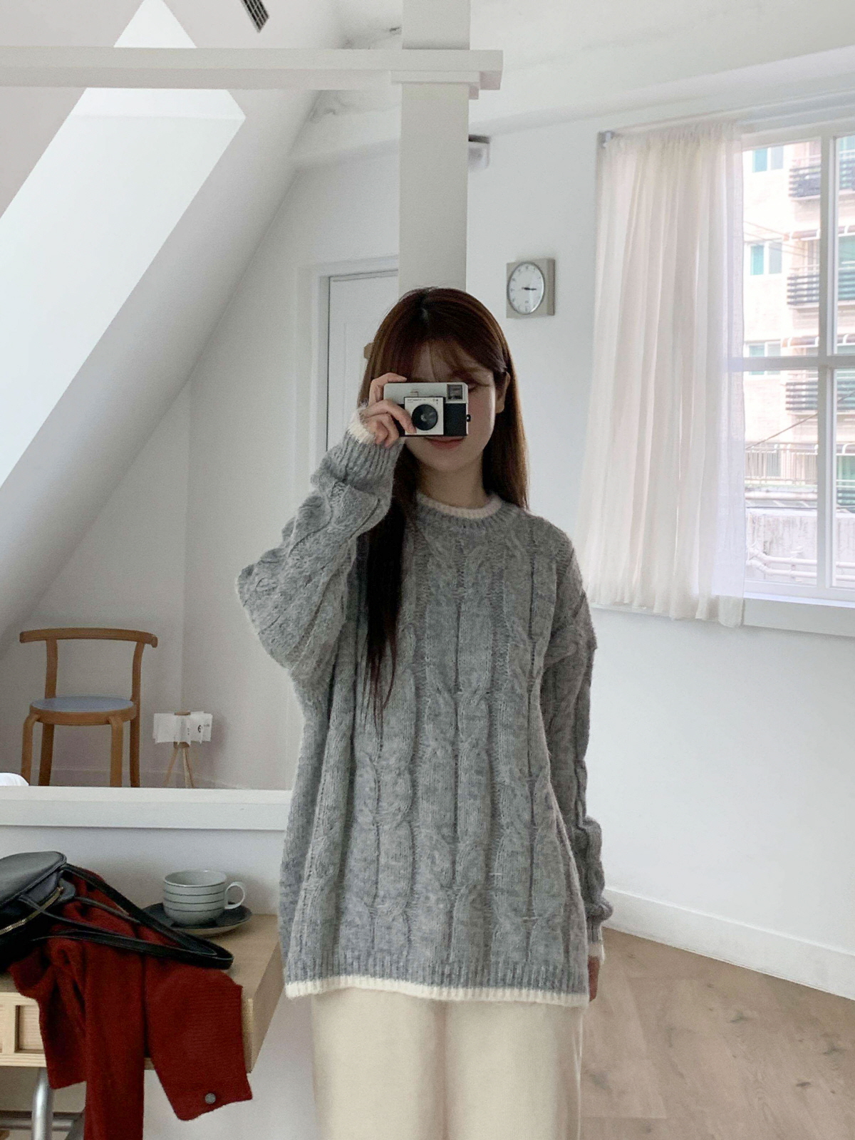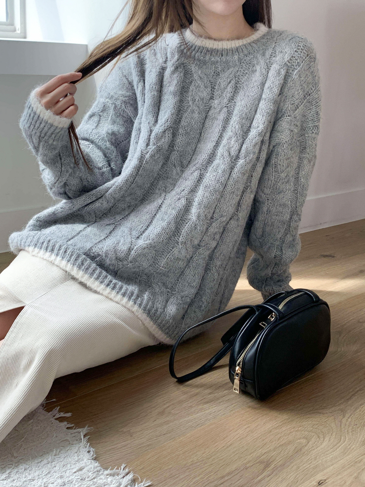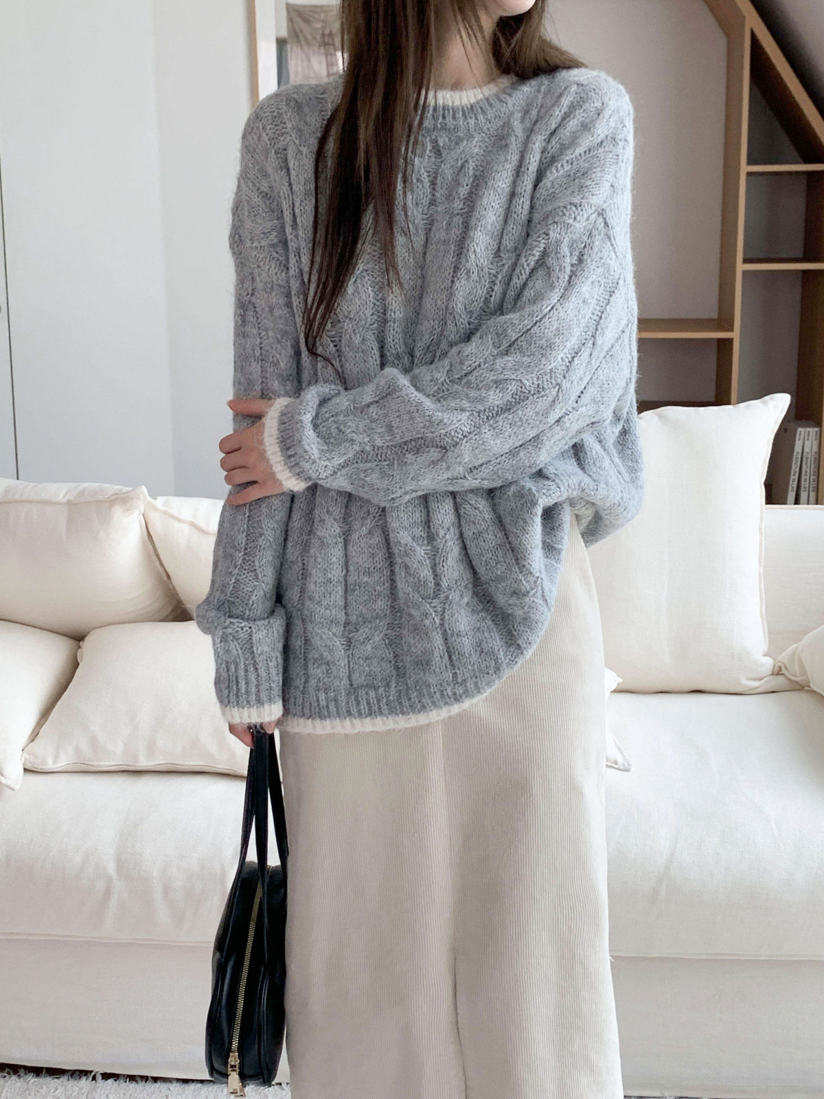 귀여운 꽈배기 짜임이 포인트인 데일리 니트