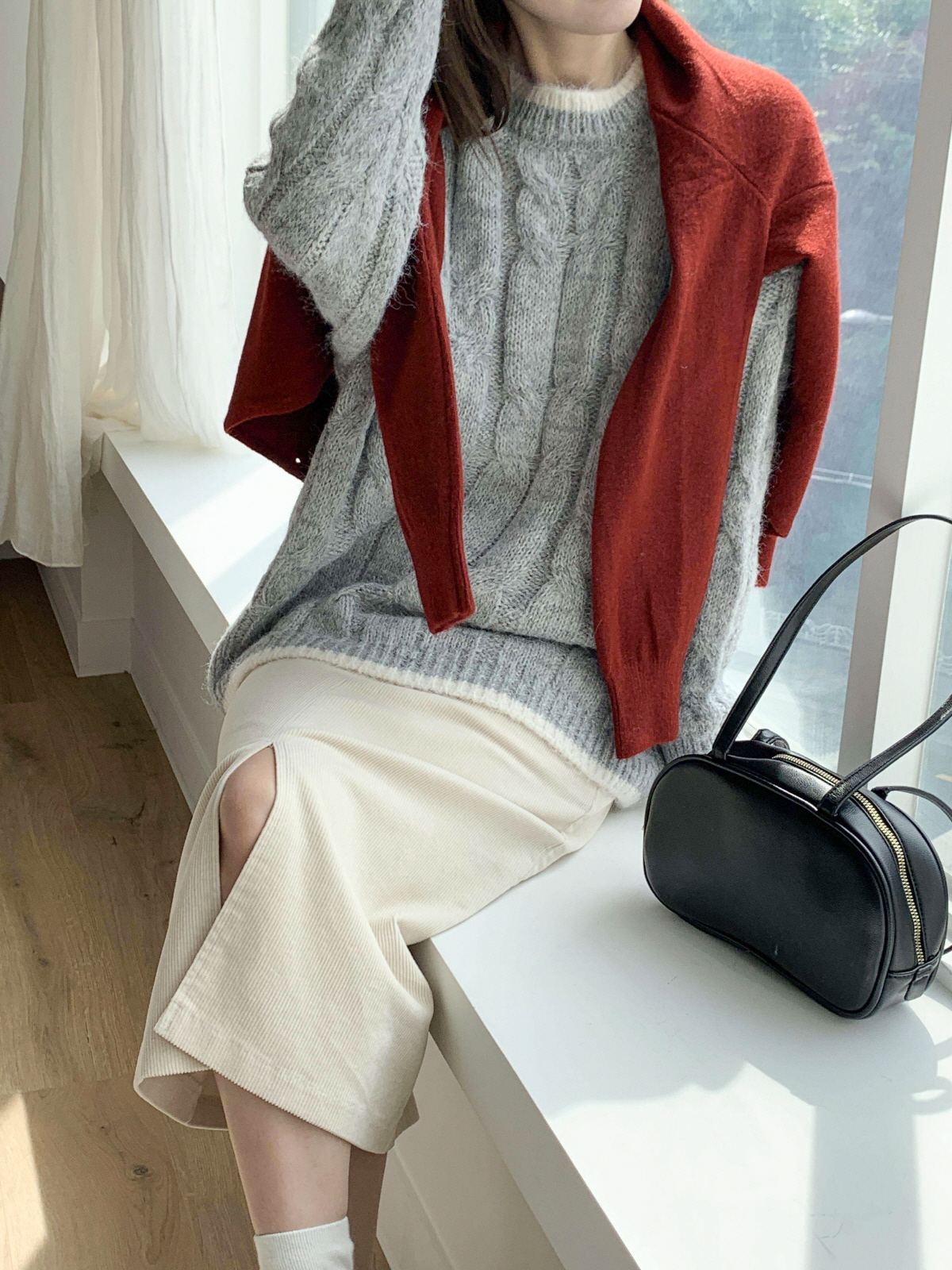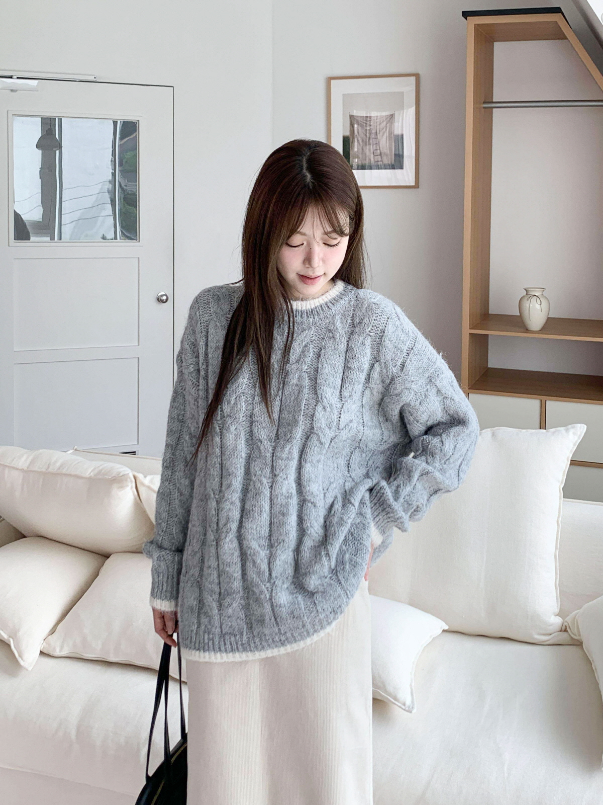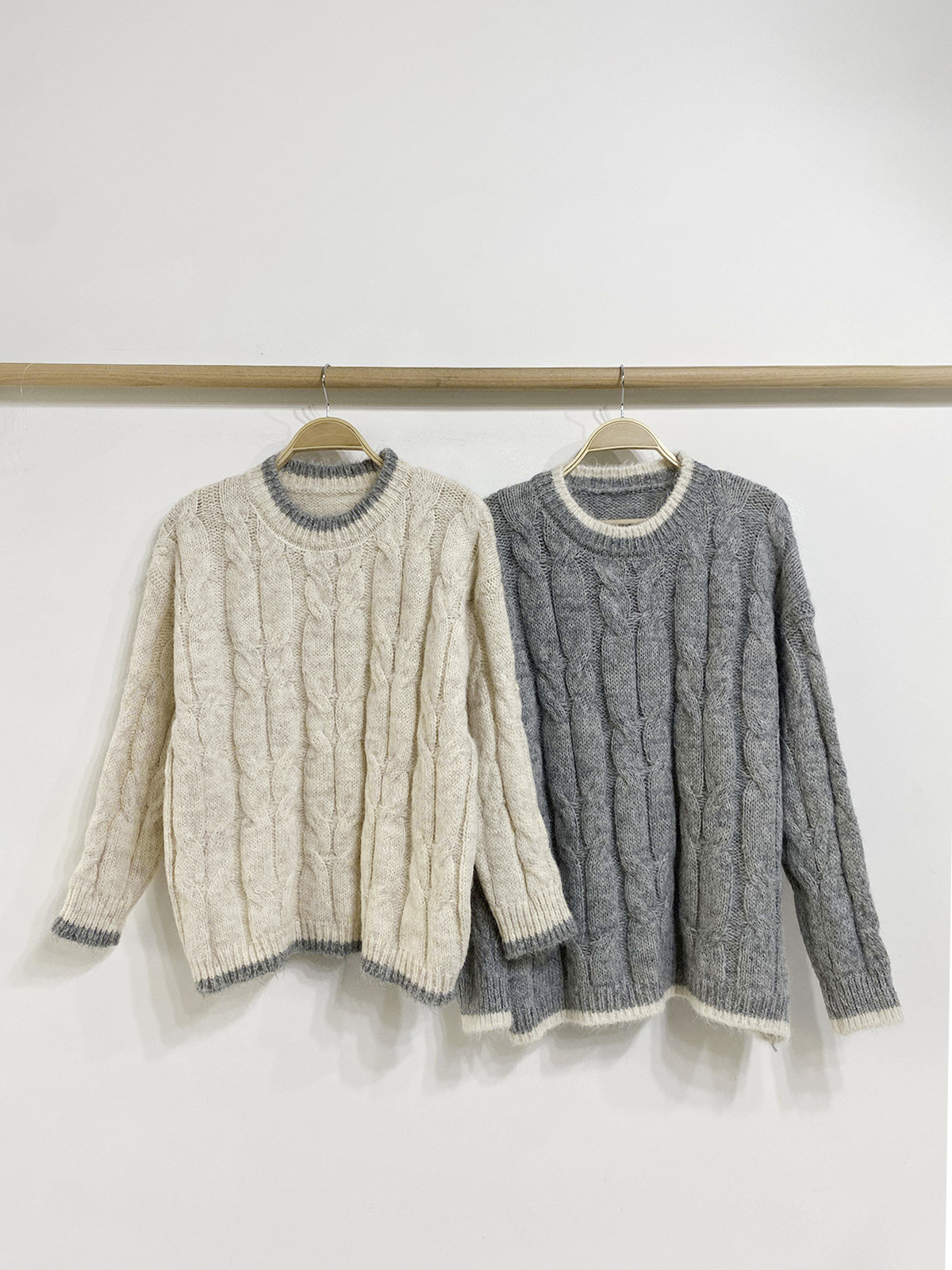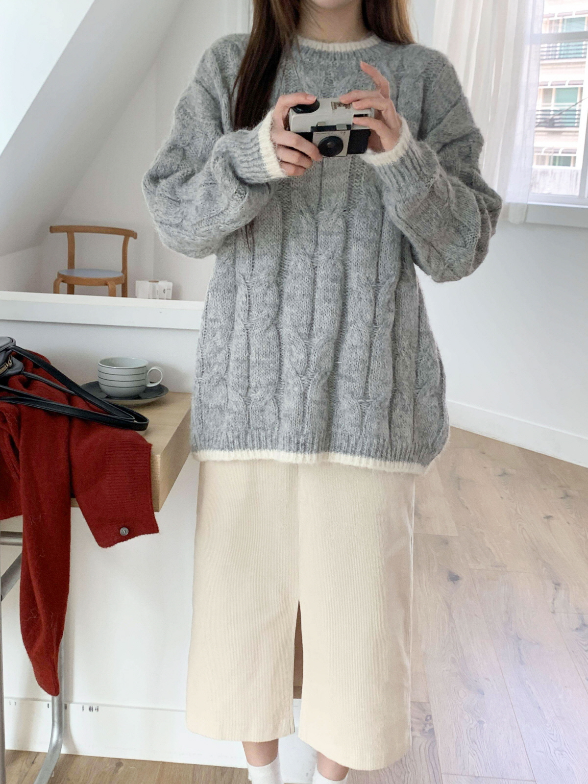 귀여운 꽈배기 짜임이 포인트인 데일리 니트