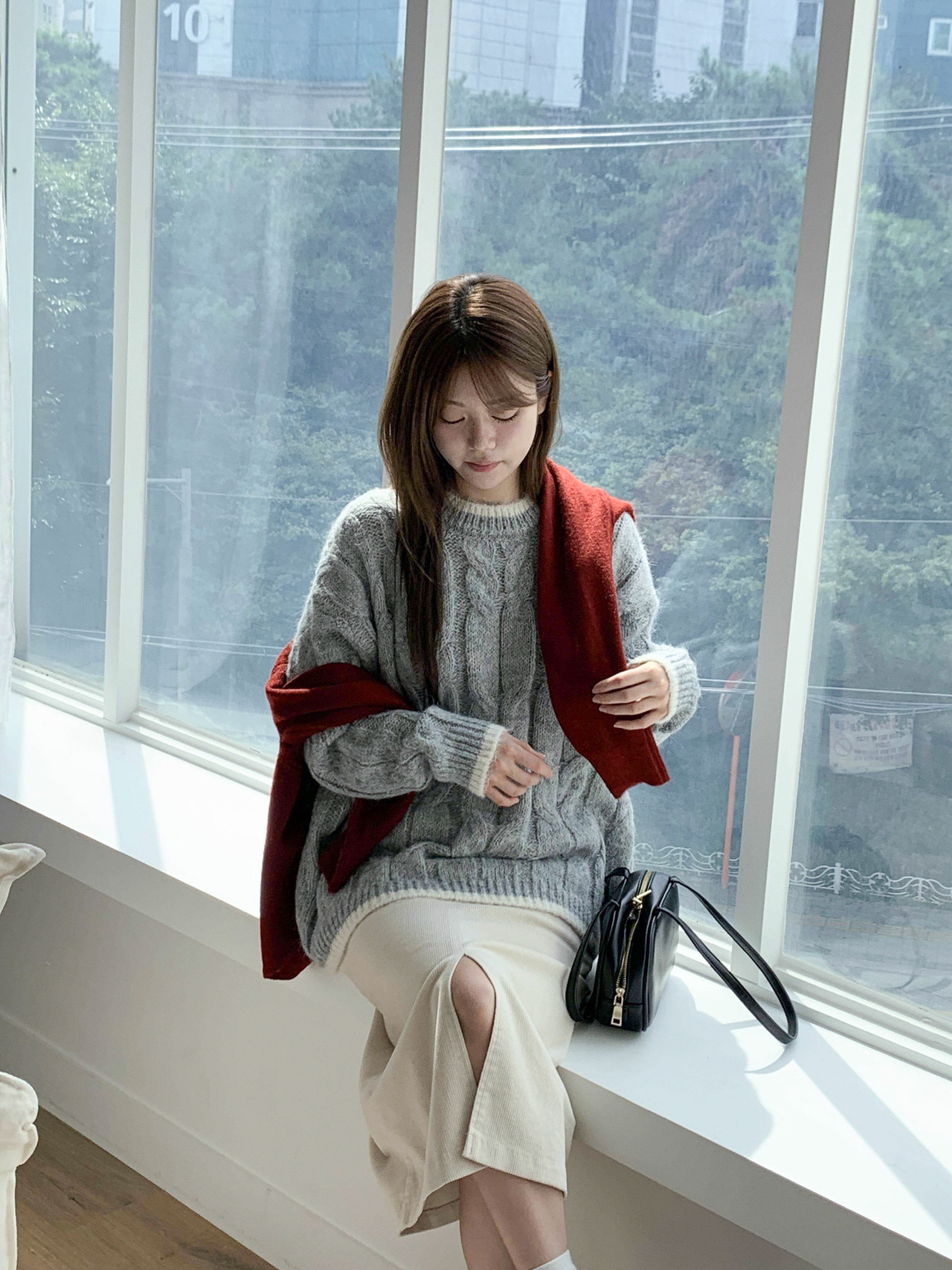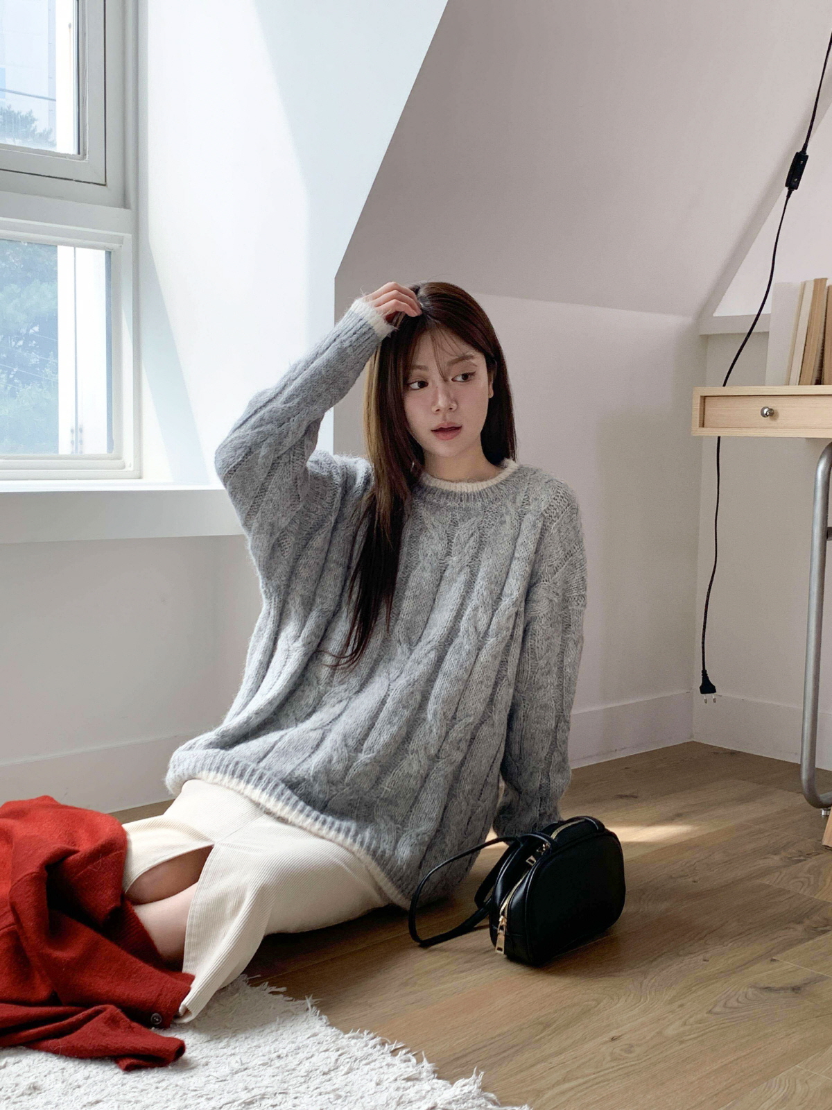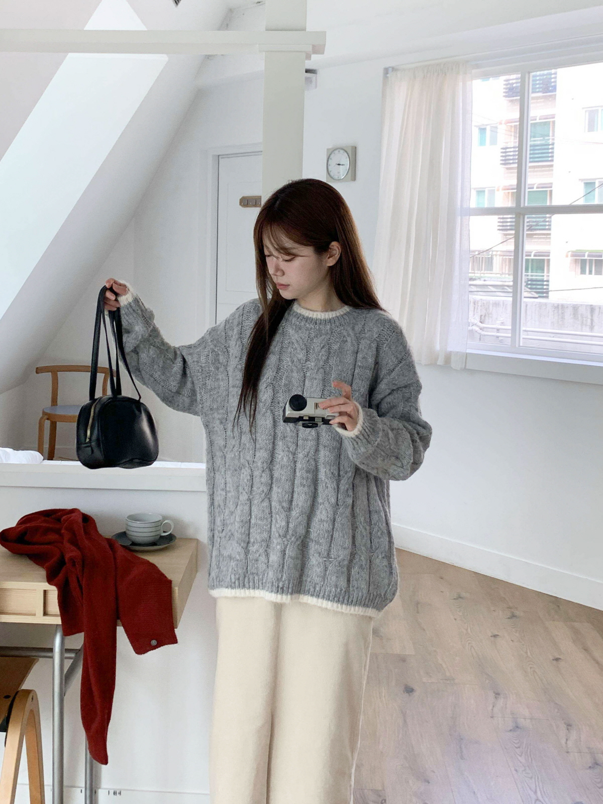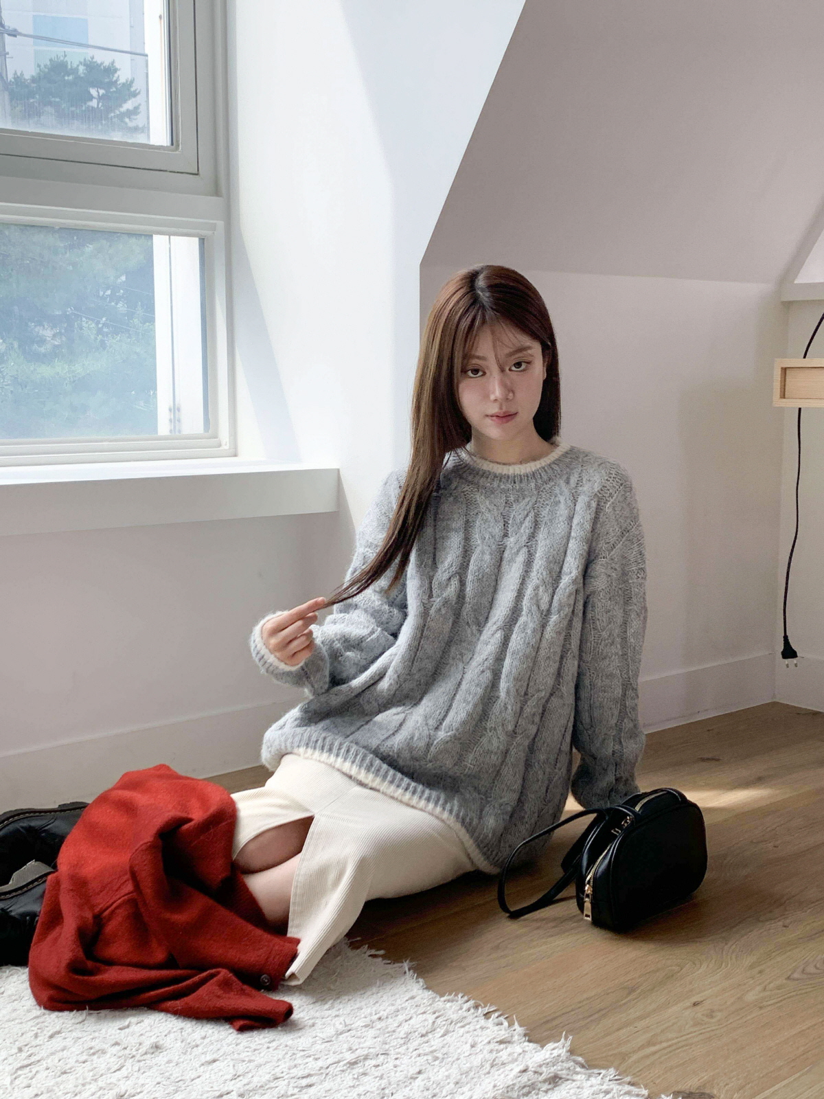 #니트#라운드넥니트#여성니트#데일리니트#니트코디#데일리코디#페미닌#러블리#캐쥬얼#데일리#가을#가을옷#가을신상#꽈배기니트#오버핏#오버핏니트