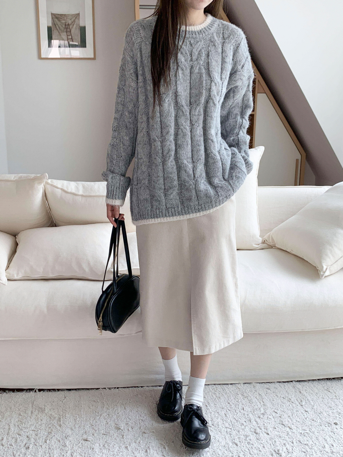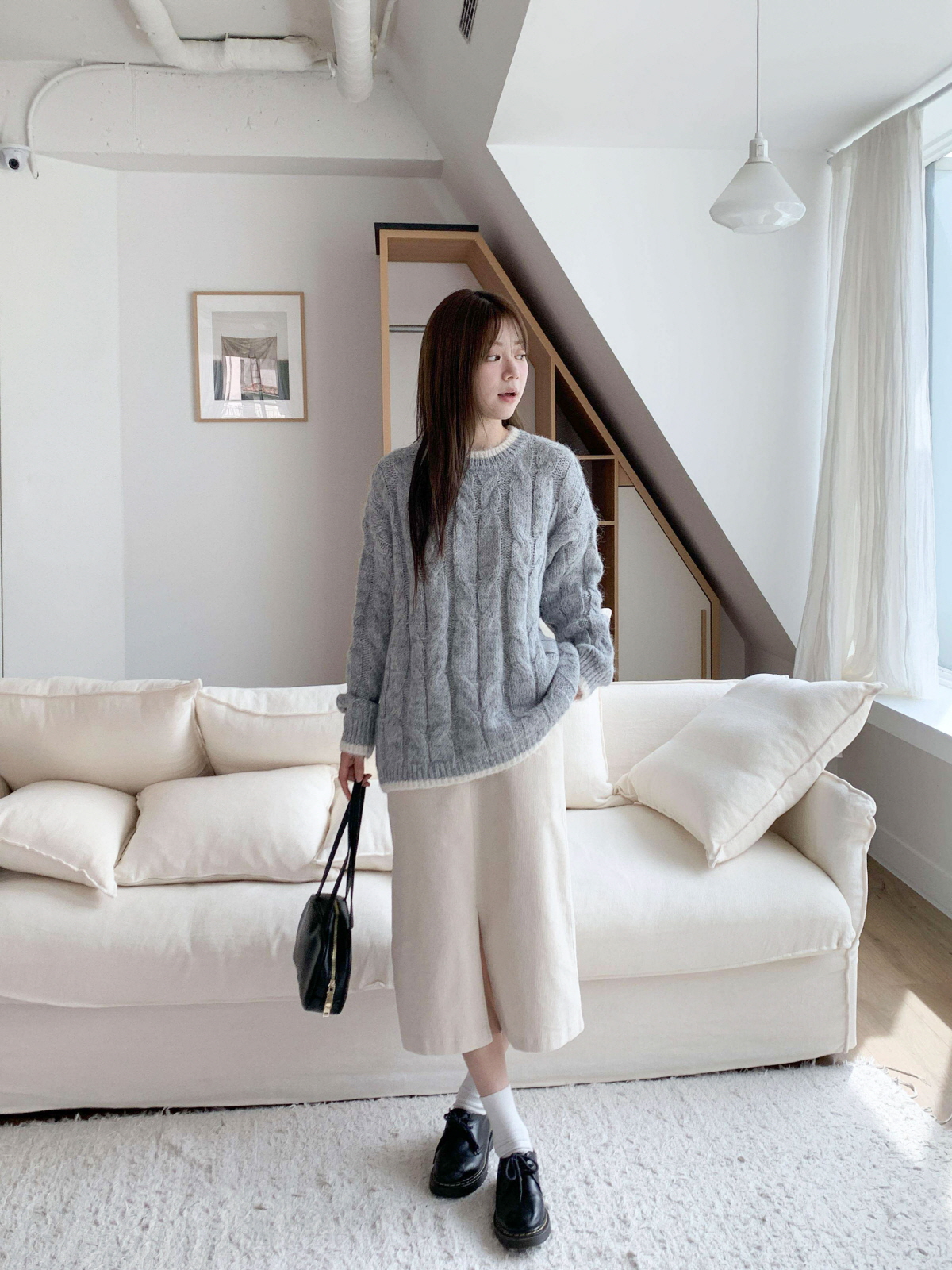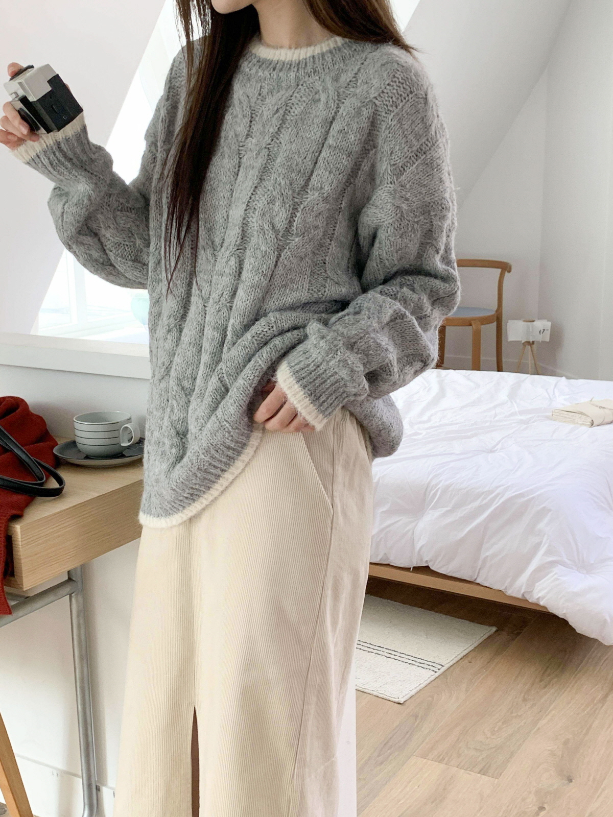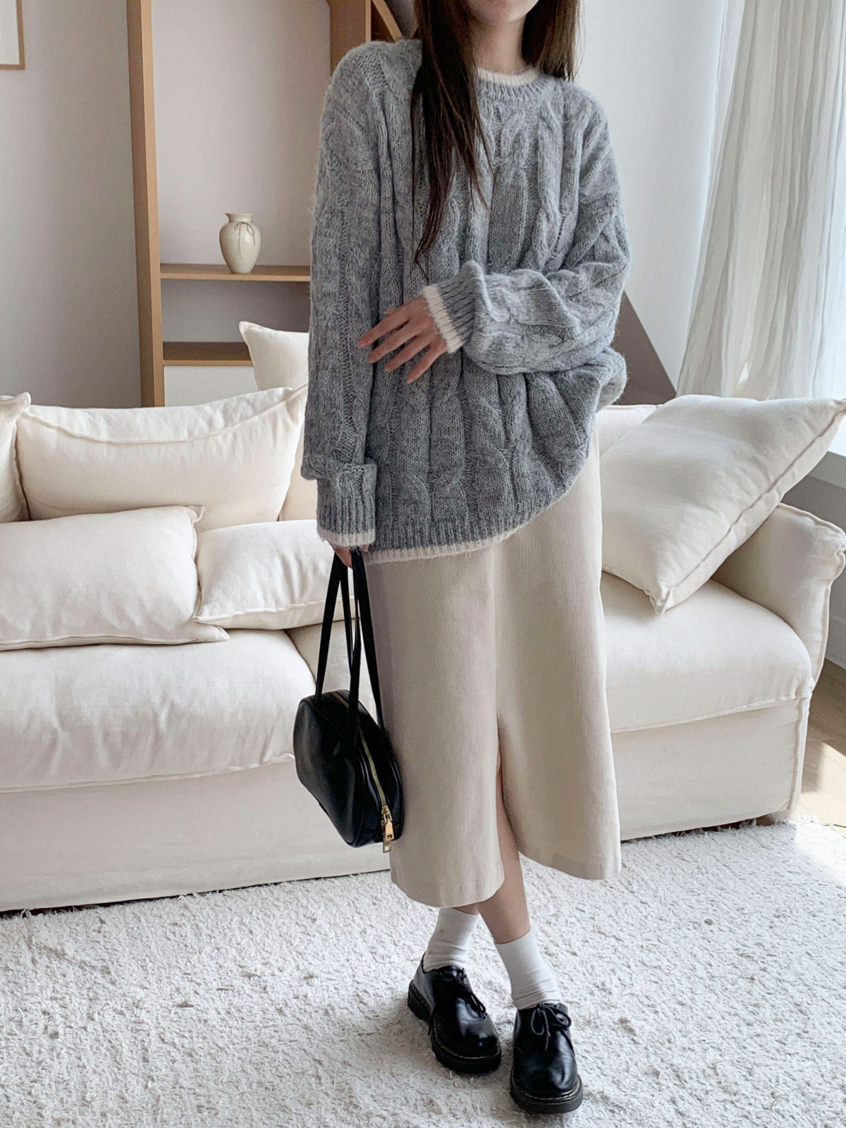 #니트#라운드넥니트#여성니트#데일리니트#니트코디#데일리코디#페미닌#러블리#캐쥬얼#데일리#가을#가을옷#가을신상#꽈배기니트#오버핏#오버핏니트