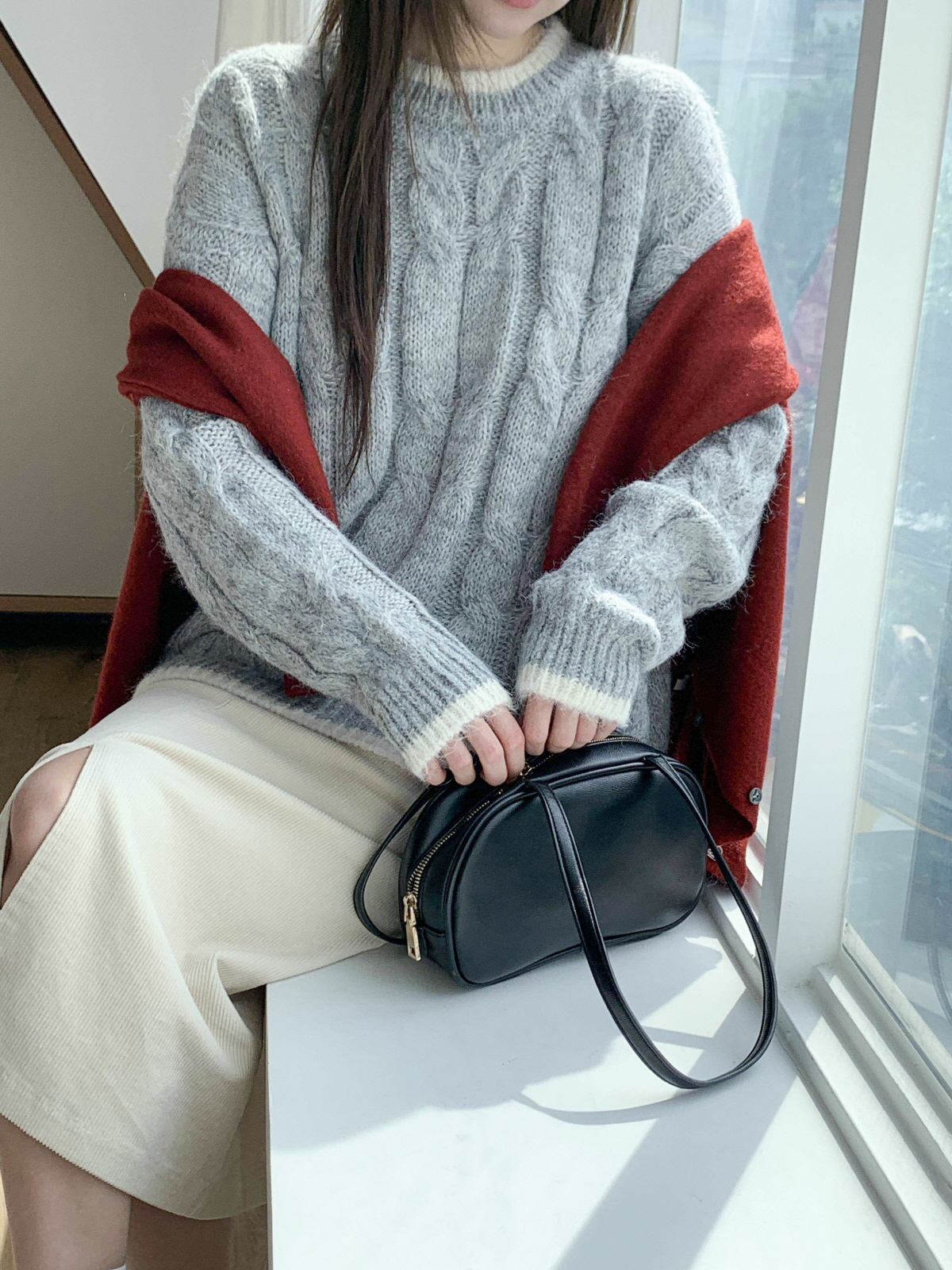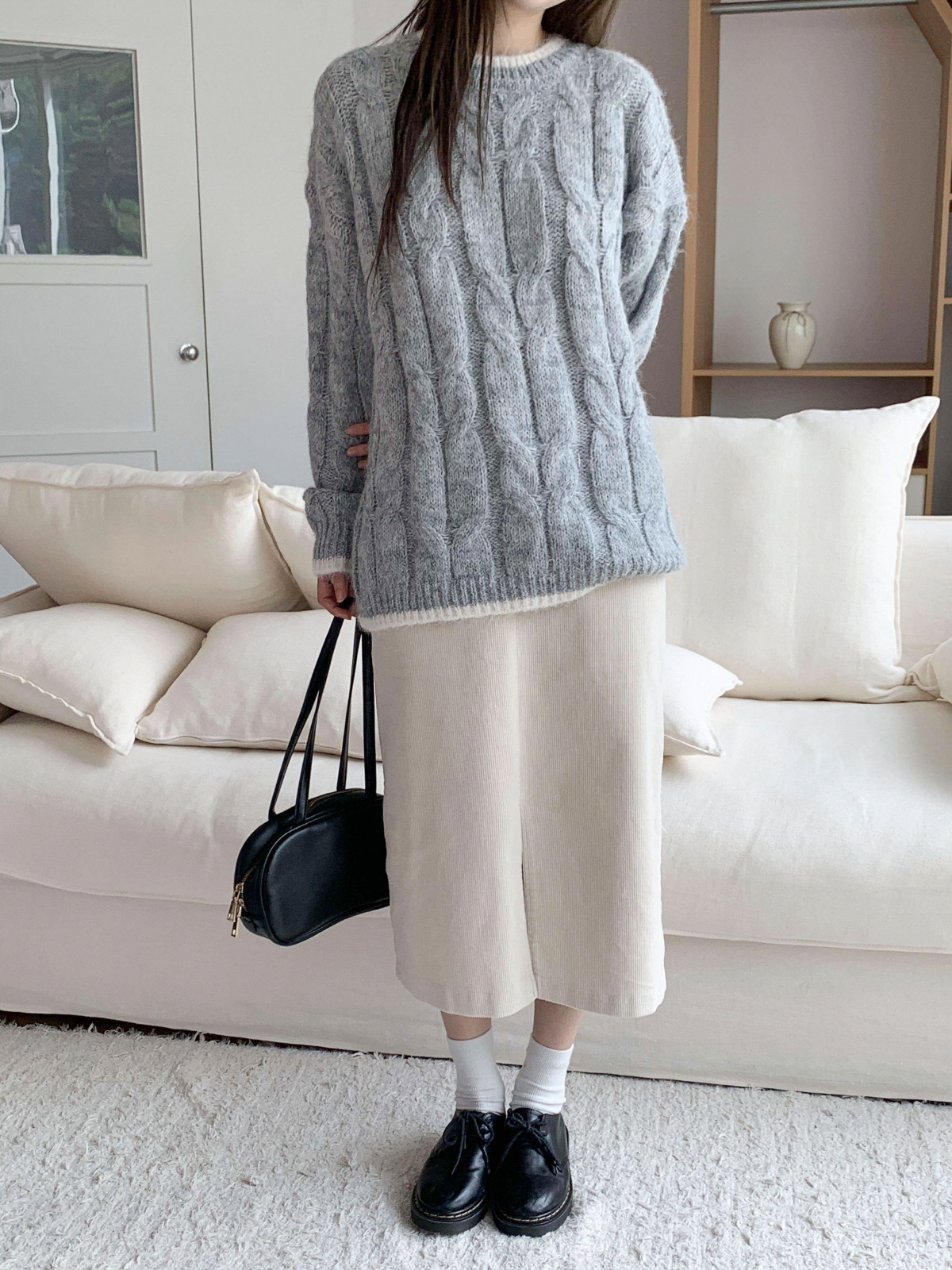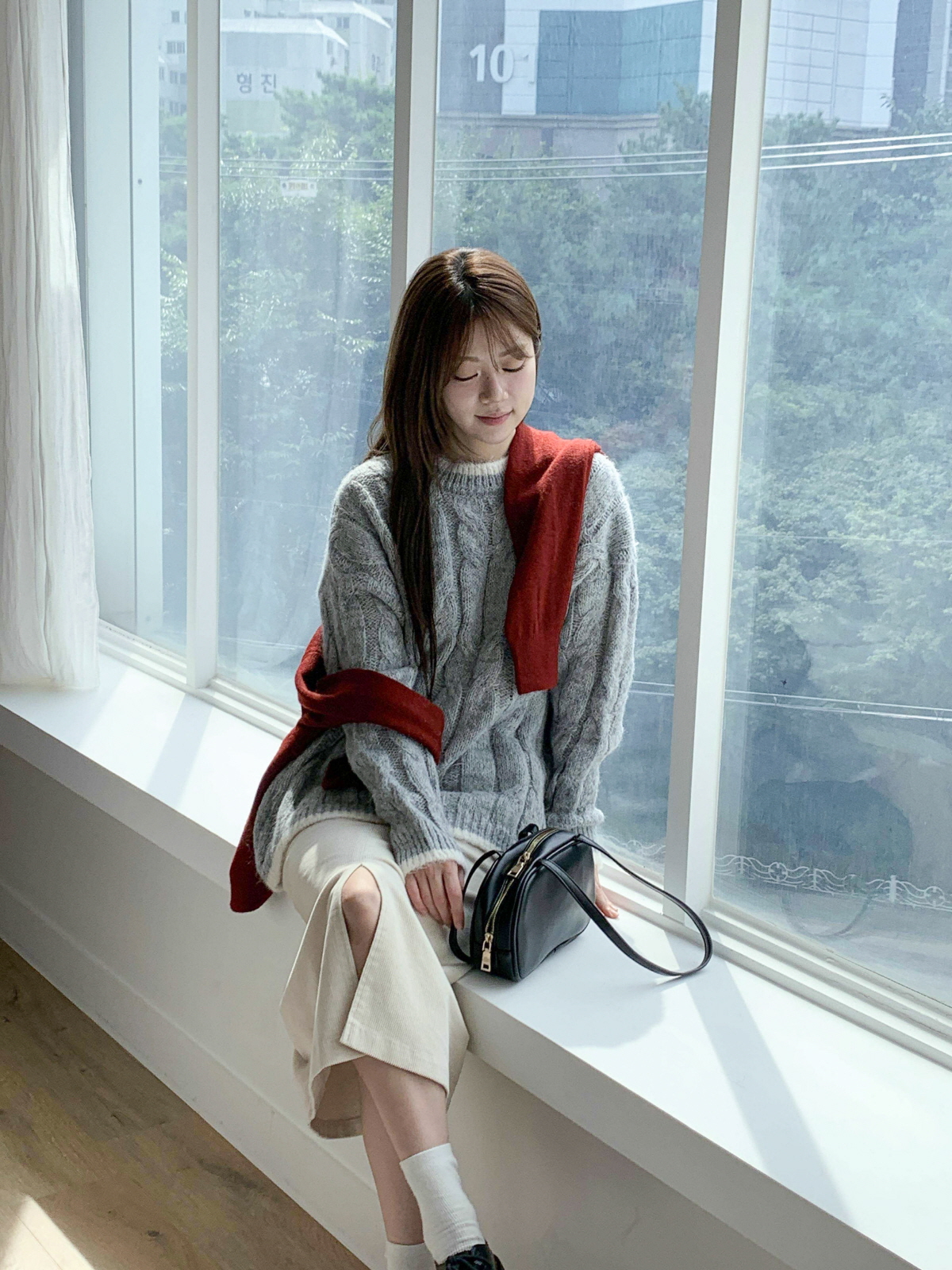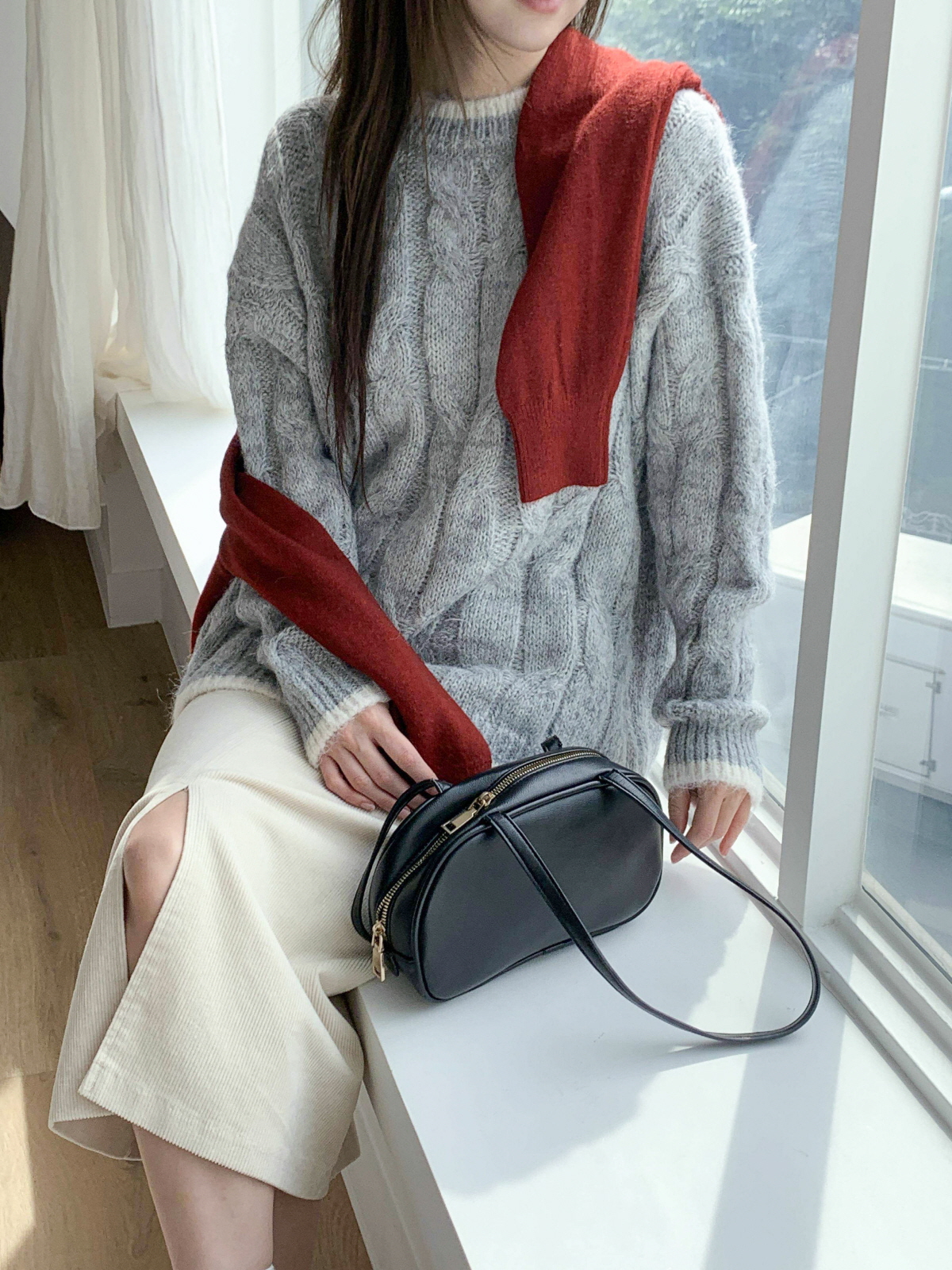 #니트#라운드넥니트#여성니트#데일리니트#니트코디#데일리코디#페미닌#러블리#캐쥬얼#데일리#가을#가을옷#가을신상#꽈배기니트#오버핏#오버핏니트